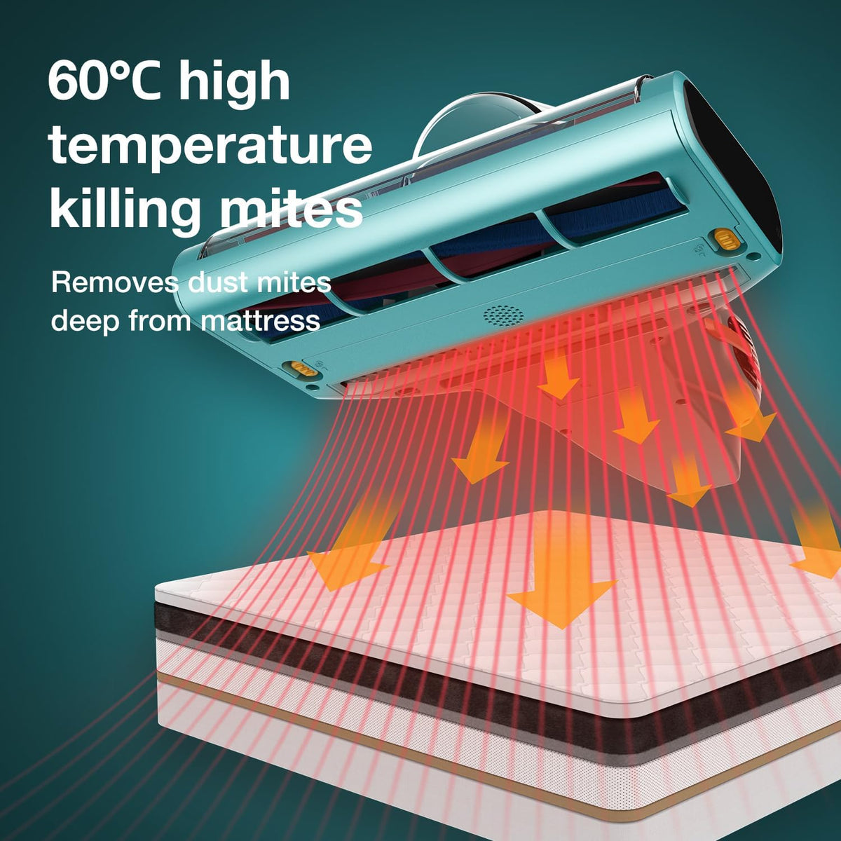 In just 5 seconds, the BX7 Pro reaches a temperature of 140°F (60°C). The hot air penetrates deep into the mattress, kills mites, and removes their breeding ground through drying. Ideal for allergy sufferers and humid climates.