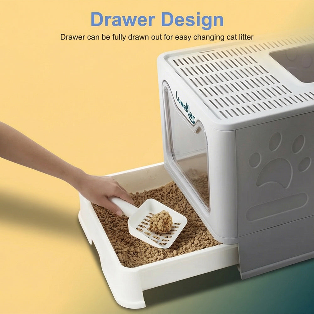 - Effortless Drawer Cleaning: Simply slide out the bottom tray to scoop waste or refresh the litter. The seamless design ensures no urine leaks into the mechanism.